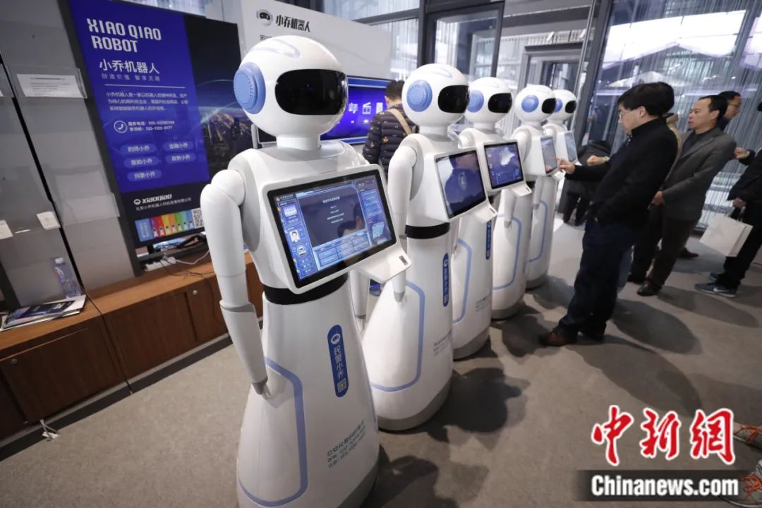 第四屆世界互聯(lián)網(wǎng)大會“互聯(lián)網(wǎng)之光”博覽會上,參觀者體驗人工智能機(jī)器人。杜洋 攝