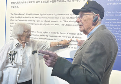走進(jìn)博物館,代表團(tuán)成員在一張張老照片、一件件珍貴實(shí)物前流連,認(rèn)真聆聽講解,還不時(shí)與身邊親友交談。麥克馬倫在展板上看到自己的名字后,興奮地向妻子珍妮弗指了指名字的位置。他曾擔(dān)任B—24轟炸機(jī)機(jī)頭炮手和助理飛行機(jī)械師,在昆明和成都參加對(duì)日作戰(zhàn)??粗AЧ窭锏恼蛊?,他感慨:“美中兩國(guó)人民的友誼將延綿不斷。”