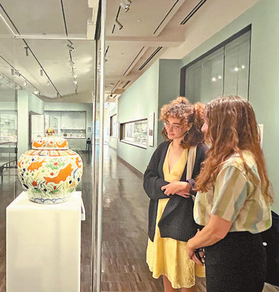 美國舊金山亞洲藝術(shù)博物館近期舉辦中國瓷器展覽。圖為當(dāng)?shù)貢r(shí)間11月13日,參觀者在欣賞藝術(shù)品。