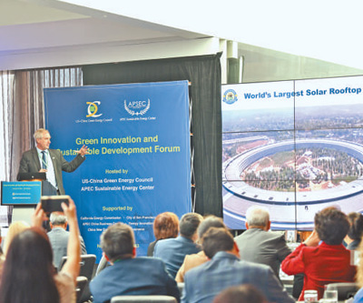 當(dāng)?shù)貢r(shí)間11月13日,由亞太經(jīng)合組織可持續(xù)能源中心和美中綠色能源促進(jìn)會共同主辦的“綠色創(chuàng)新與可持續(xù)發(fā)展論壇”在舊金山舉行,與會嘉賓就清潔能源、綠色發(fā)展、共同應(yīng)對氣候變化等議題交流研討。