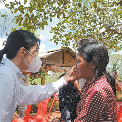 2022年3月,由中國(guó)中醫(yī)科學(xué)院西苑醫(yī)院醫(yī)生為主體的中國(guó)援柬中醫(yī)醫(yī)療隊(duì)抵達(dá)柬首都金邊,開(kāi)始為期1年的醫(yī)療服務(wù)工作。今年1月,醫(yī)療隊(duì)來(lái)到桔井省,為當(dāng)?shù)孛癖娺M(jìn)行義診,許多人慕名前來(lái)檢查身體?!奥?tīng)村里人說(shuō),中國(guó)醫(yī)療隊(duì)的口碑非常好,治好了很多患者,我就想帶女兒去試試?!蓖⒍U達(dá)的母親孔吉棉告訴記者。
