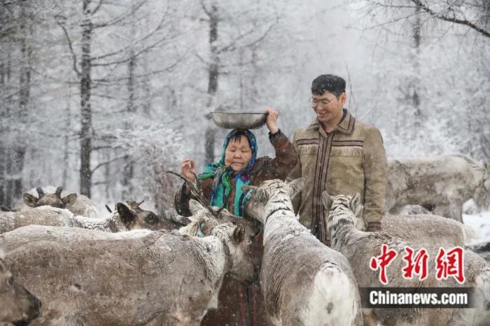 2019年,他接過部族的傳承,和母親共同照顧著鹿群,并開始以短視頻的形式,給更多人展示使鹿鄂溫克人原汁原味的生活狀態(tài)。