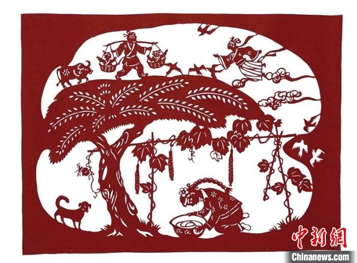 醫(yī)巫閭山滿族剪紙作品《乞巧節(jié)》。圖片來源:臺灣《聯(lián)合報》