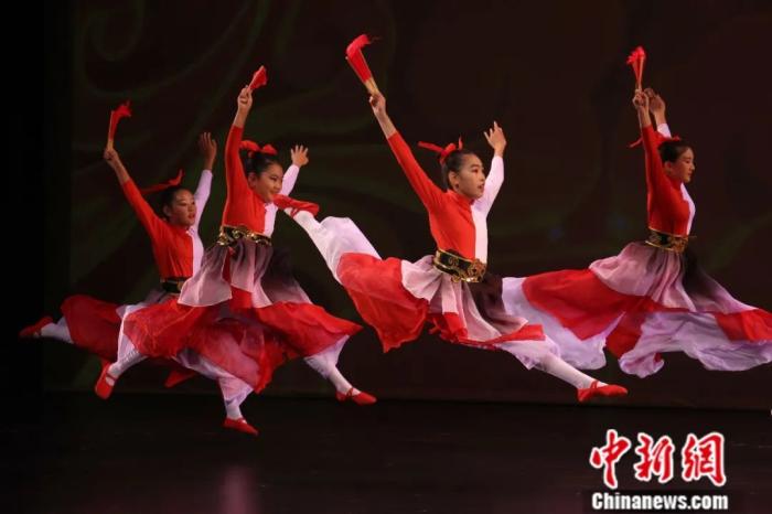 2023年9月,加拿大大多倫多地區(qū)萬錦市,加拿大舞蹈藝術聯(lián)盟舉辦首屆舞蹈大賽。圖為一支中國舞兒童組參賽隊進行表演。余瑞冬 攝