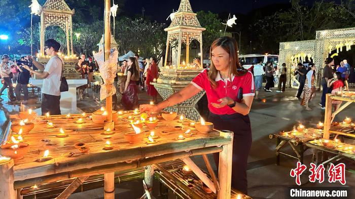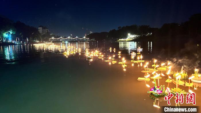 中新網(wǎng)曼谷11月28日電(李映民 趙婧楠)“月圓之夜,河水上漲,青年男女載歌載舞漂水燈,漂水燈,幸福將陪伴你我……”伴隨著悠揚(yáng)的古典樂曲,泰國古城清邁的濱河邊,民眾穿著傳統(tǒng)服裝,手里捧著精心制作的水燈,放到河面上,隨著水流緩緩漂去……