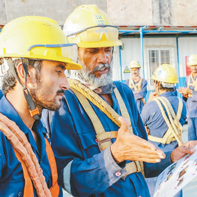 巴基斯坦員工在卡拉奇核電項(xiàng)目現(xiàn)場(chǎng)學(xué)習(xí)安全知識(shí)。