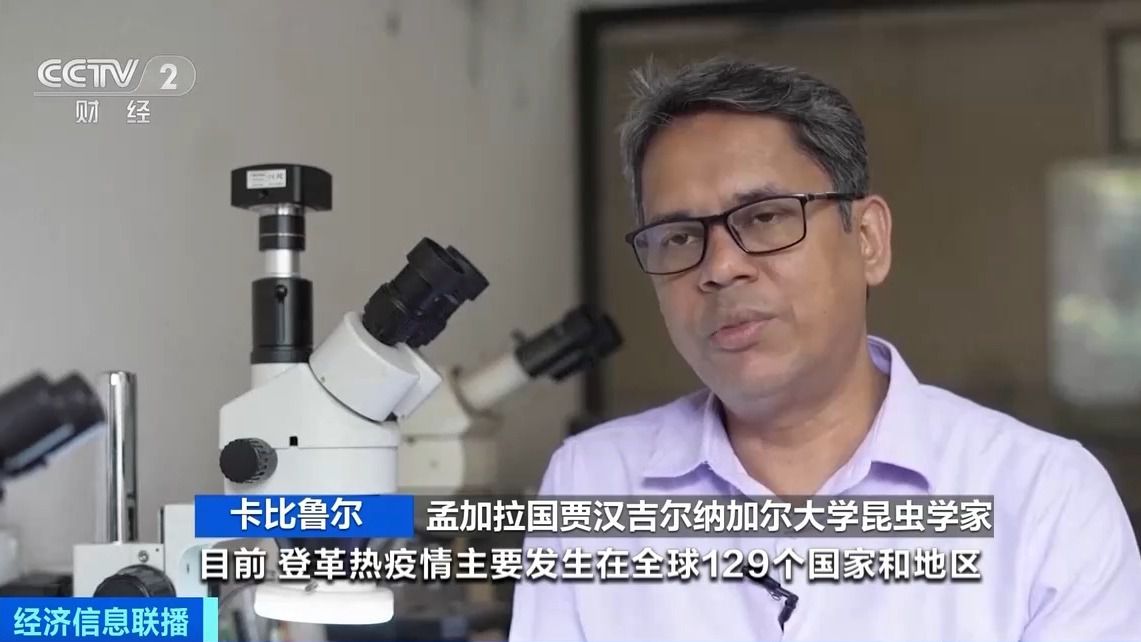 孟加拉國(guó)賈漢吉爾納加爾大學(xué)昆蟲學(xué)家 卡比魯爾:目前,登革熱疫情主要發(fā)生在全球129個(gè)國(guó)家和地區(qū),其中大多數(shù)國(guó)家都位于熱帶和亞熱帶,這些國(guó)家容易受到氣候變化的影響。(央視財(cái)經(jīng))