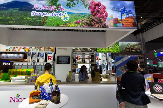 圖為11月6日在第六屆進(jìn)博會國家展拍攝的尼加拉瓜展臺。新華社記者 高巍 攝