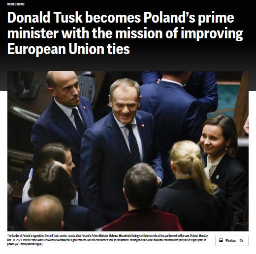 “謝謝波蘭,這確實是美好的一天,”圖斯克在講話中表示。歐盟委員會主席烏爾蘇拉·馮德萊恩在社交媒體上向圖斯克表示祝賀。