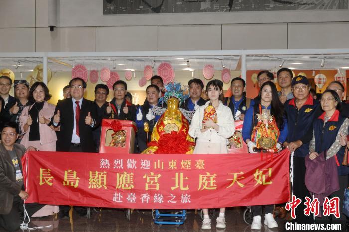 中新社臺(tái)北12月12日電 (記者 陳小愿)山東煙臺(tái)長島顯應(yīng)宮宋代銅身媽祖“北庭天妃”12日抵達(dá)臺(tái)灣桃園機(jī)場(chǎng),將前往新北、臺(tái)北等多個(gè)縣市的16個(gè)宮廟巡安、探親。