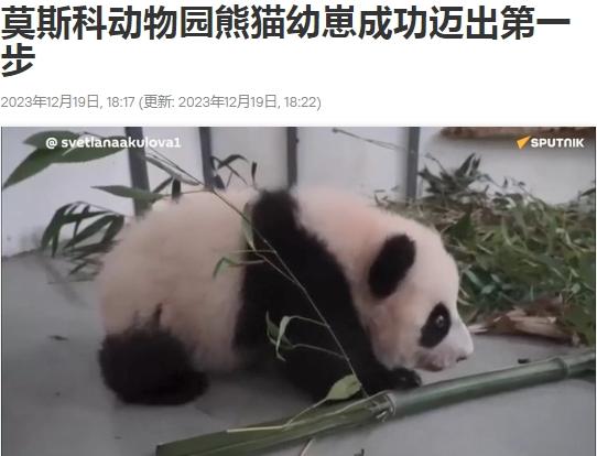 中新網(wǎng)12月19日電 據(jù)俄羅斯衛(wèi)星通訊社19日?qǐng)?bào)道,俄羅斯莫斯科動(dòng)物園園長(zhǎng)斯韋特蘭娜·阿庫(kù)洛娃在社交平臺(tái)發(fā)文稱,旅俄大熊貓“丁丁”的幼崽成功邁出了第一步。