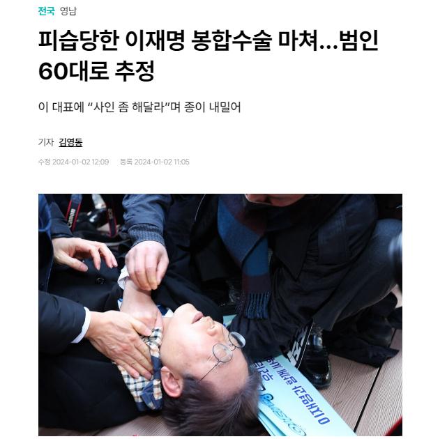 據(jù)報(bào)道,李在明2日在釜山出席活動(dòng)時(shí)遇襲,頸部左側(cè)有約1厘米裂傷,在現(xiàn)場接受緊急止血,隨后送醫(yī)治療。當(dāng)?shù)貢r(shí)間11點(diǎn)14分左右,李在明接受了縫合手術(shù)。