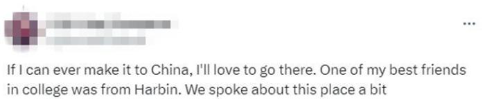有網(wǎng)友表示,“如果我能去中國,我很想去那里。我大學(xué)時最好的一個朋友就是來自哈爾濱。我們聊過這個地方。”