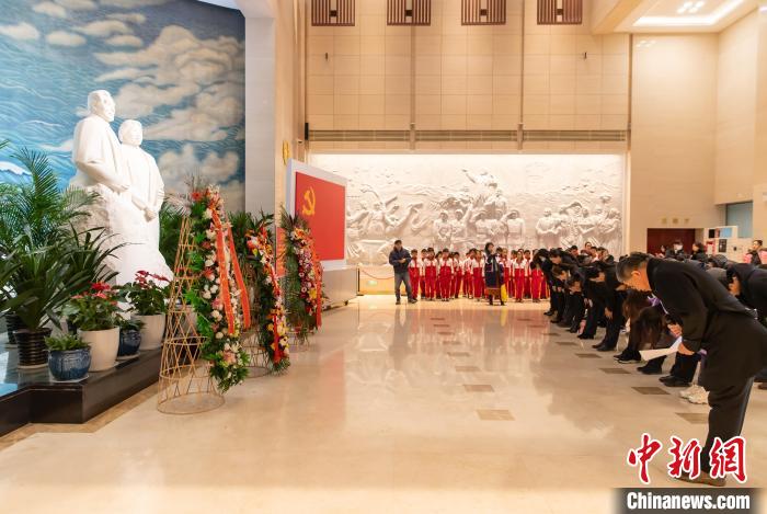 據(jù)了解,緬懷活動在該紀念館瞻仰廳舉行,由紀念館黨總支副書記、副館長王建平主持。9時57分,紀念館黨總支書記、館長王起寶代表紀念館全體職工向周恩來鄧穎超漢白玉雕像敬獻花籃,并帶領全體職工鞠躬致敬,以表達對周恩來同志的深切緬懷。