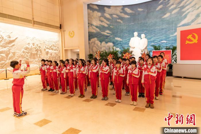 隨后,天津市川府里小學學生為大家?guī)砭世收b《為中華之崛起而讀書》,再現(xiàn)了周恩來青年時代在奉天(今沈陽)東關模范學校上學時立下的宏偉志向。伴隨著《紅星閃閃》的嘹亮歌曲,新時代少年立下了“故今日之責任,不在他人,而全在我少年。少年智則國智,少年富則國富,少年強則國強.......”的鏗鏘誓言。