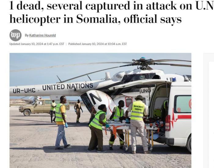 中新網(wǎng)1月11日電 美國《華盛頓郵報(bào)》援引消息人士稱,當(dāng)?shù)貢r(shí)間10日,聯(lián)合國一架直升機(jī)因故緊急迫降在加爾古杜德州后,被索馬里“青年黨”劫持。