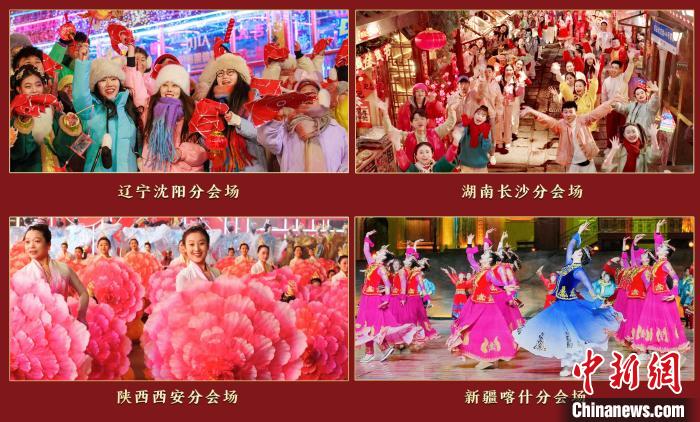 在中國工業(yè)博物館的沈陽分會場,東北曲藝與當(dāng)代風(fēng)尚的創(chuàng)意碰撞,讓受眾在冰天雪地感受火一般的熱情;長沙分會場選址于湘江與瀏陽河交匯處的“三館一廳”,用青春之歌呈現(xiàn)“不夜星城”朝氣蓬勃的風(fēng)貌;西安分會場的國潮表演將陜派說唱、創(chuàng)意水袖、鼓樂交響等多種藝術(shù)形式相融合,大唐不夜城再現(xiàn)詩意滿長安的恢弘景象;位于喀什古城內(nèi)的喀什分會場,各族群眾歡歌笑語,帶來器樂展示、情景演繹等表演。