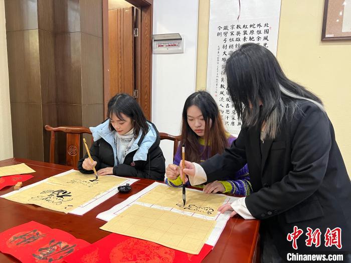圖為臺青體驗書法。中新網(wǎng)記者周毅攝