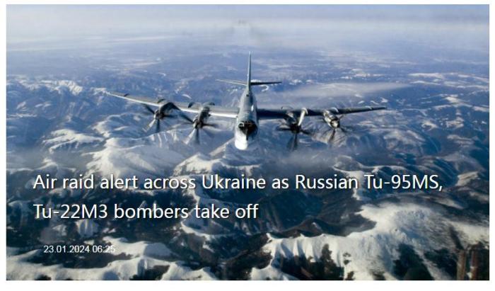 中新網(wǎng)1月23日電 據(jù)烏通社23日?qǐng)?bào)道,烏克蘭全境拉響防空警報(bào)。報(bào)道稱(chēng),烏克蘭空軍記錄到當(dāng)?shù)貢r(shí)間23日早些時(shí)候,多架圖-95轟炸機(jī)和圖-22轟炸機(jī)從俄羅斯起飛。