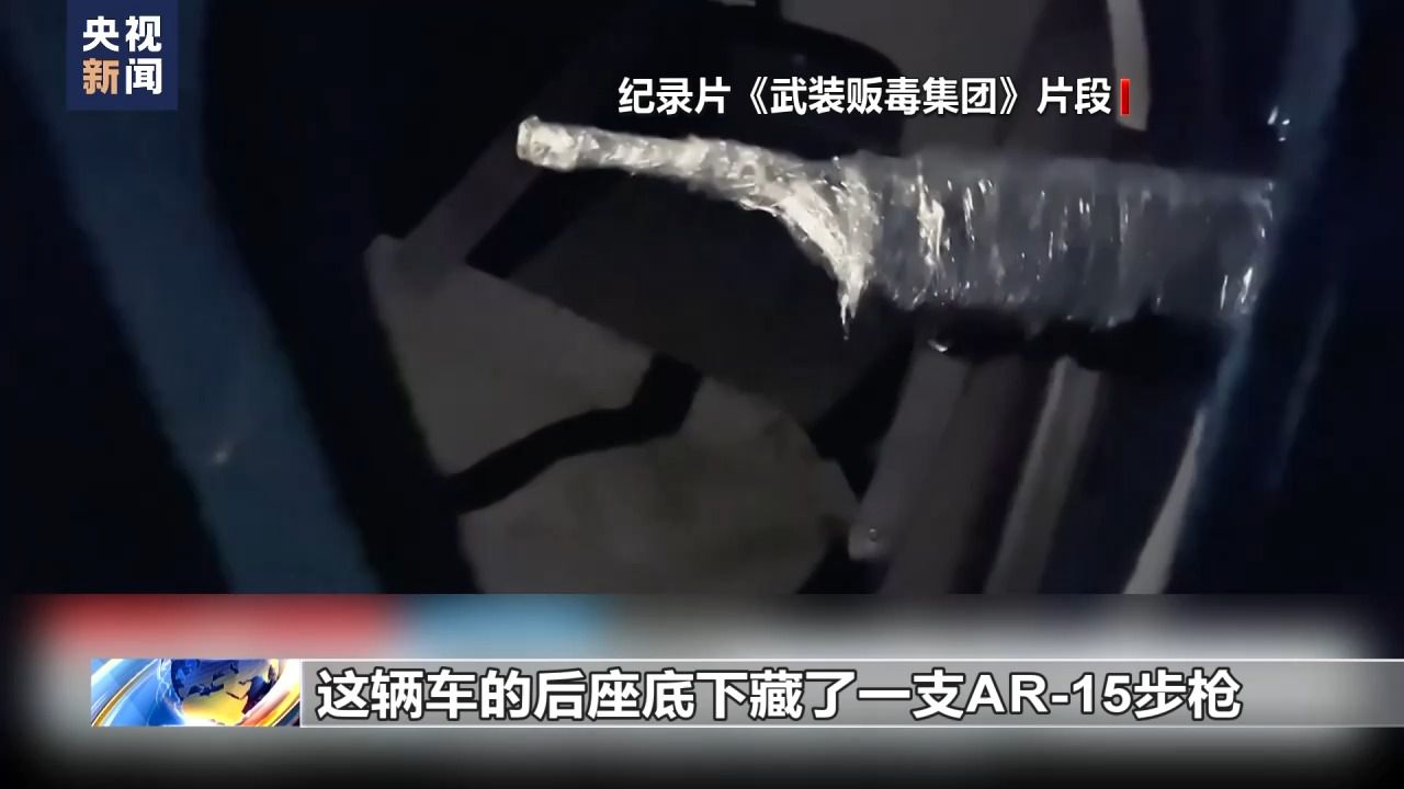 紀錄片《武裝販毒集團》片段:我剛從汽車油箱里取出這支用塑料布包著的9毫米口徑手槍,還在往下淌汽油呢。這輛車的后座底下藏了一支AR-15步槍。