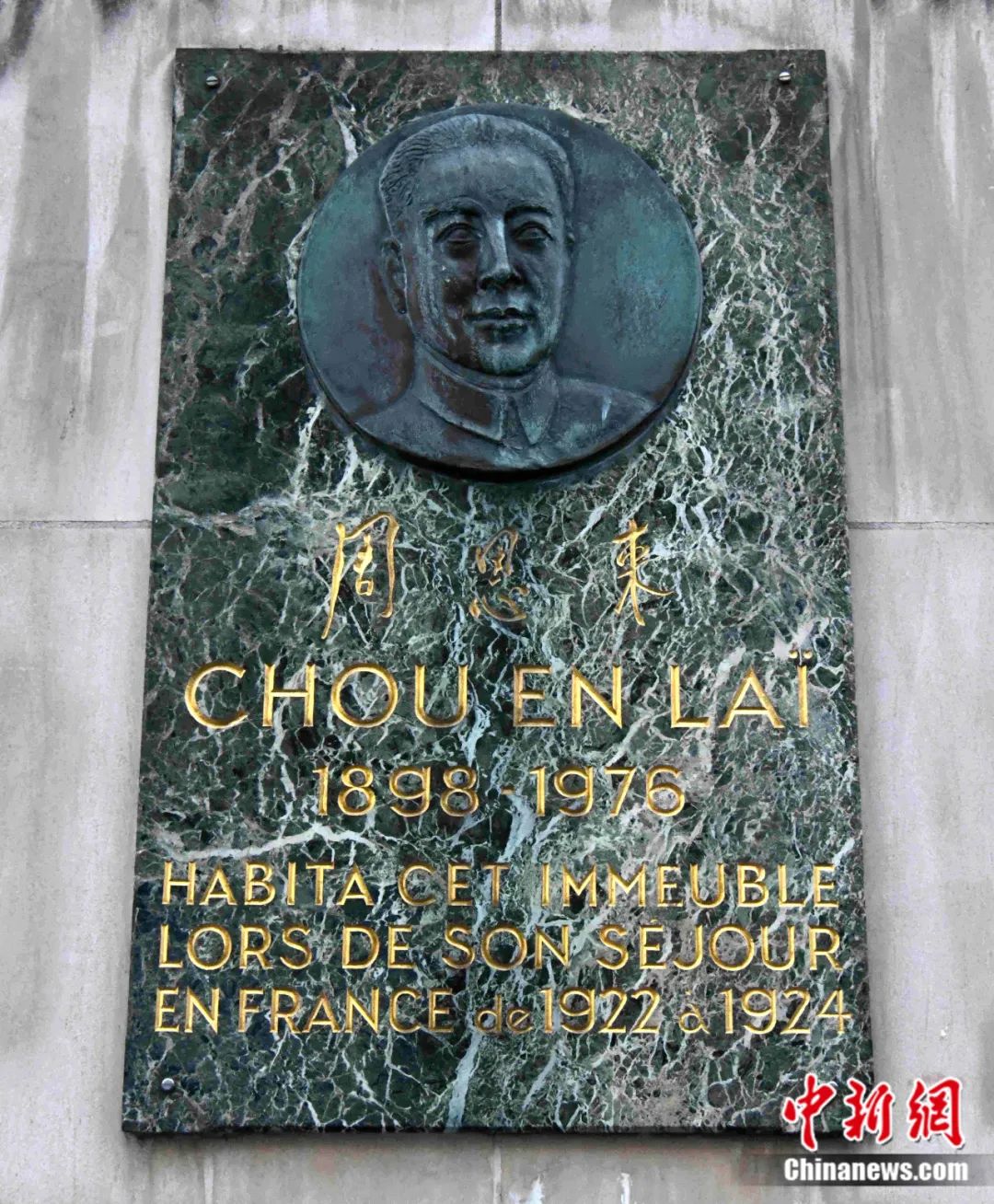 在巴黎設立的周恩來總理紀念牌。李洋 攝