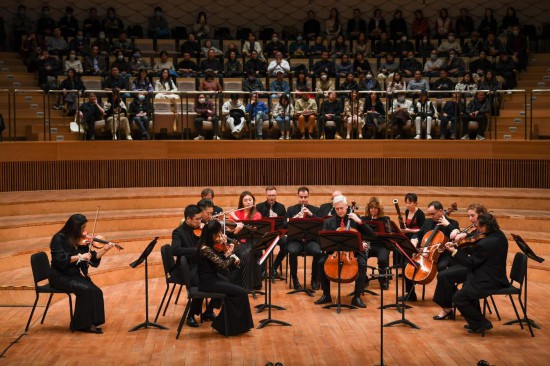 這是2023年11月16日拍攝的音樂會現(xiàn)場。當日,“費城之約”——費城交響樂團與蘇州交響樂團室內(nèi)樂音樂會在江蘇蘇州舉行。新華社記者 李博 攝
