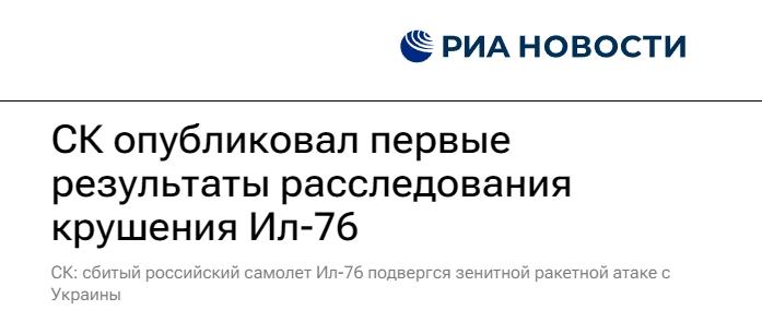 俄羅斯偵查委員會(huì)在聲明中表示,正在對(duì)機(jī)身碎片等物體進(jìn)行專業(yè)鑒定,同時(shí)詢問(wèn)事件目擊者并繼續(xù)進(jìn)行現(xiàn)場(chǎng)調(diào)查。根據(jù)初步調(diào)查結(jié)果,可以確定伊爾-76運(yùn)輸機(jī)遭到了來(lái)自烏克蘭境內(nèi)的防空導(dǎo)彈襲擊。
