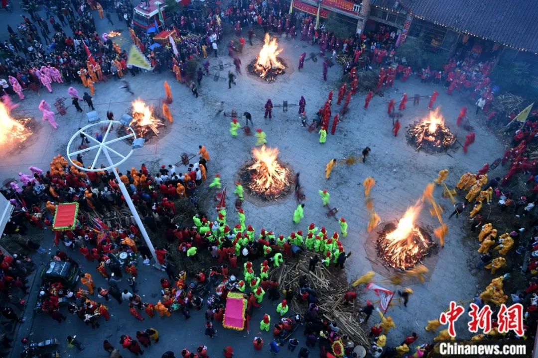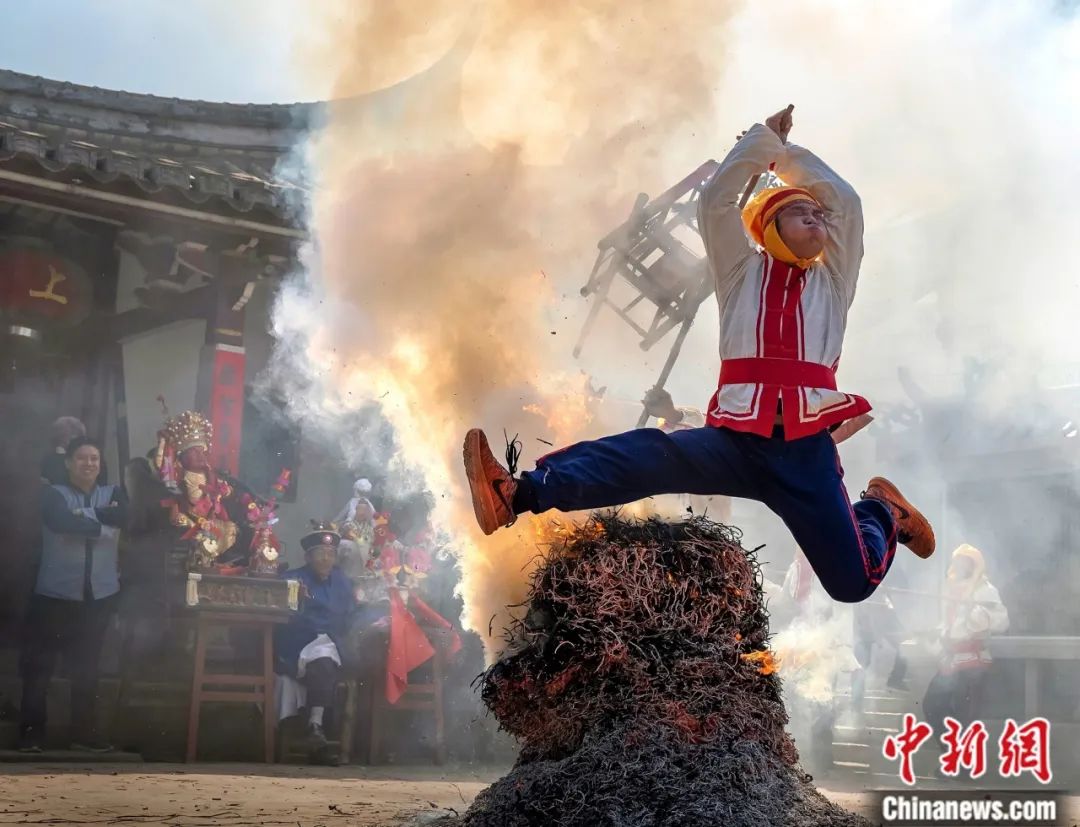 赤腳跨儺火。中新社記者 呂明 攝