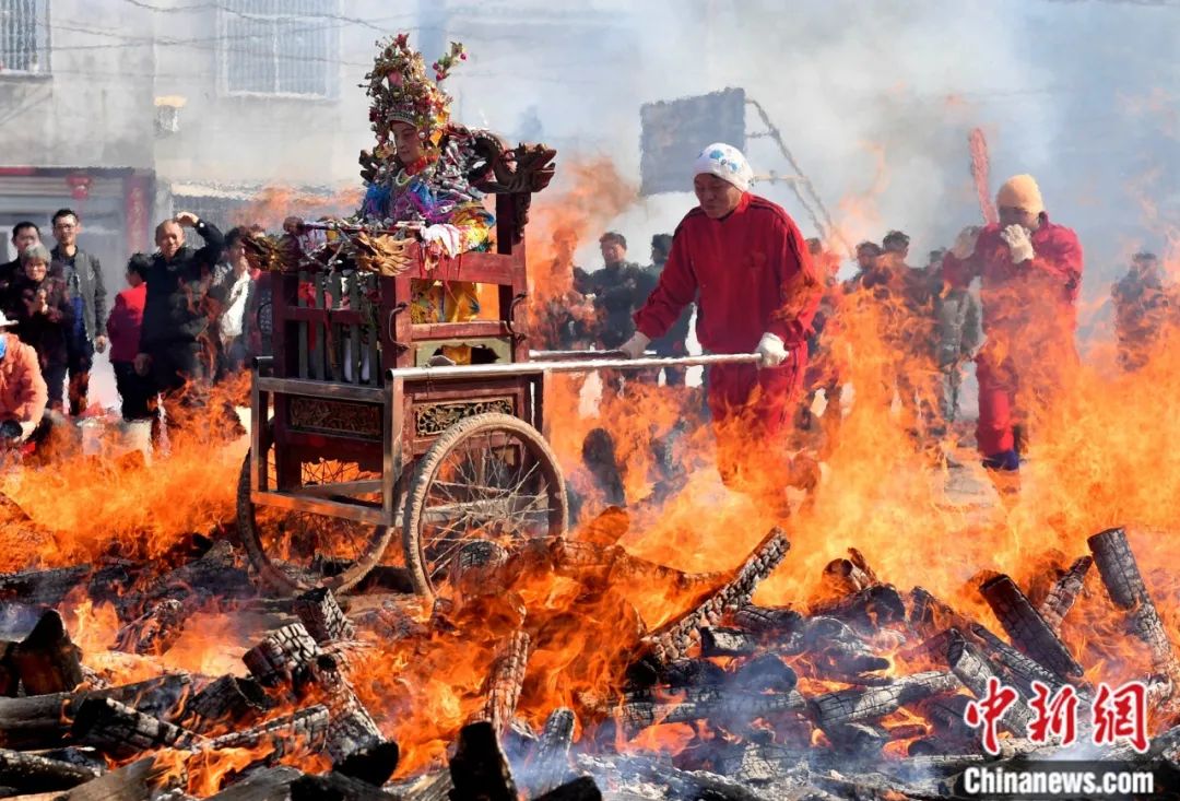 信眾在莆禧古城“擺棕轎”跳火祈福。中新社記者 王東明 攝