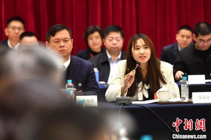 2024年1月22日,在福建省政協(xié)十三屆二次會(huì)議上,臺(tái)灣青年陳筱婷作為列席人員在小組會(huì)議上發(fā)言。中新網(wǎng)記者呂明攝