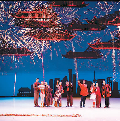 舞臺上,紅彤彤的燈籠、喜慶的春聯(lián)、熱鬧的廟會奏響了中國農(nóng)歷新年的序曲;“團團”和“圓圓”家的年夜飯彰顯了中國禮儀之邦的待客之道、尊老愛幼的傳統(tǒng)美德,一張全家福更傳達了中國人對親情的重視和對團圓的向往;“胡桃夾子”大戰(zhàn)“年”獸,則充滿童趣地演繹了“過年”的傳說;而當寓意吉祥的仙鶴在蒼勁的松樹下迎著朝陽翩翩起舞,西方芭蕾藝術在中國文化意象中煥發(fā)出了美妙的東方神韻;扇子舞、絲綢舞、風箏舞、陀螺舞……一個個頗具中國元素的慶典場面讓阿聯(lián)酋觀眾游歷在瑰麗多姿的中國傳統(tǒng)文化中。