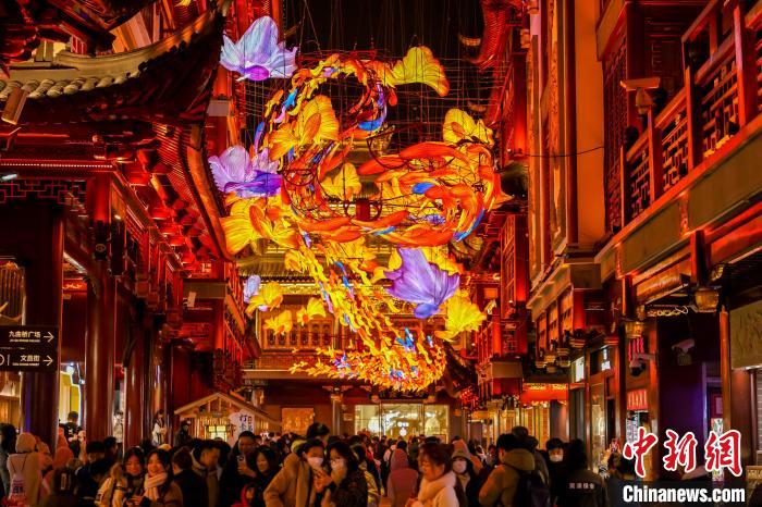 上海豫園商城凝暉路上的“一夜魚龍舞”主題燈組。(復(fù)星國(guó)際供圖)