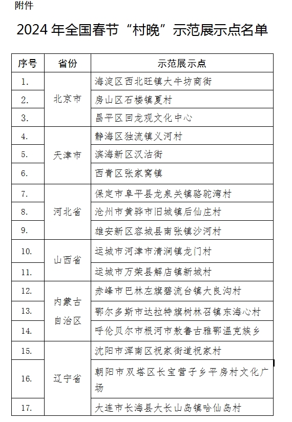 2024年全國(guó)春節(jié)“村晚”示范展示點(diǎn)名單