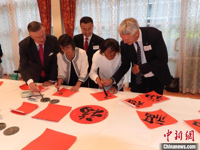 當?shù)貢r間2月2日晚,中國駐悉尼總領事館在領館舉辦2024年春節(jié)招待會。當晚的招待會現(xiàn)場上,來賓們互致新春祝福,并興致勃勃地體驗中國書法。記者 顧時宏 攝