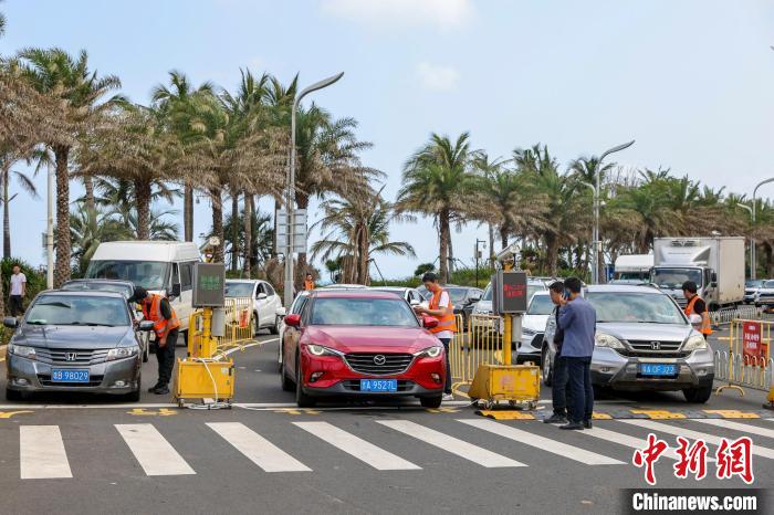 記者5日中午在??谑虚L樂路的小車查驗(yàn)點(diǎn)看到,雙向4車道被改為東往西單向行駛,過海的小車排隊經(jīng)查驗(yàn)點(diǎn)時,聯(lián)網(wǎng)的攝像頭拍下車牌信息,一旁電子屏馬上就顯示車主所購輪渡的發(fā)船時間。若發(fā)船時間在三個小時內(nèi),車輛直行直通港口。若超過三個小時,執(zhí)勤人員引導(dǎo)車輛駛離進(jìn)港通道。