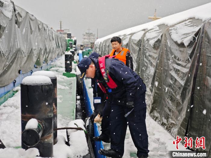 長江航運工作人員風(fēng)雪中保障渡運安全。交通運輸部長江航務(wù)管理局供圖