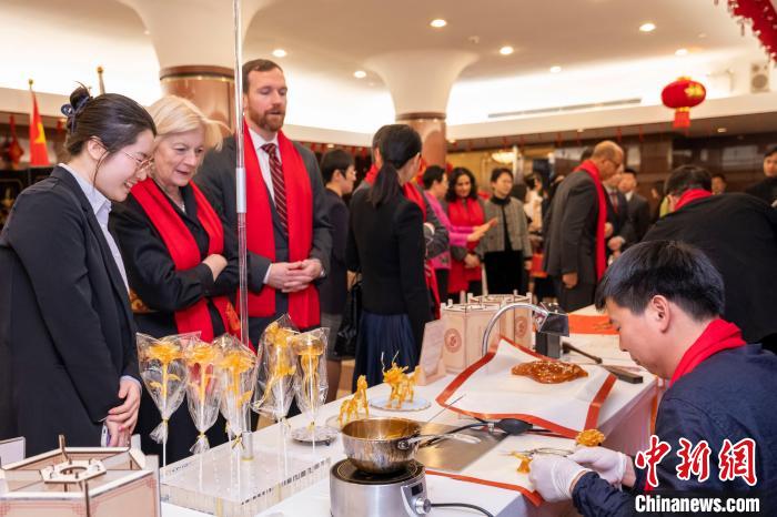 招待會上,來自浙江省的工藝美術大師和非遺傳承人精心準備了各具特色的中國非遺和年俗互動項目,來自美國西北大學的音樂家演唱了激情澎湃的《為祖國干杯》和熱鬧喜慶的《龍船調》。來賓們紛紛表示,期待新的一年繼續(xù)與中國攜手努力,建設更美好的世界。(完)