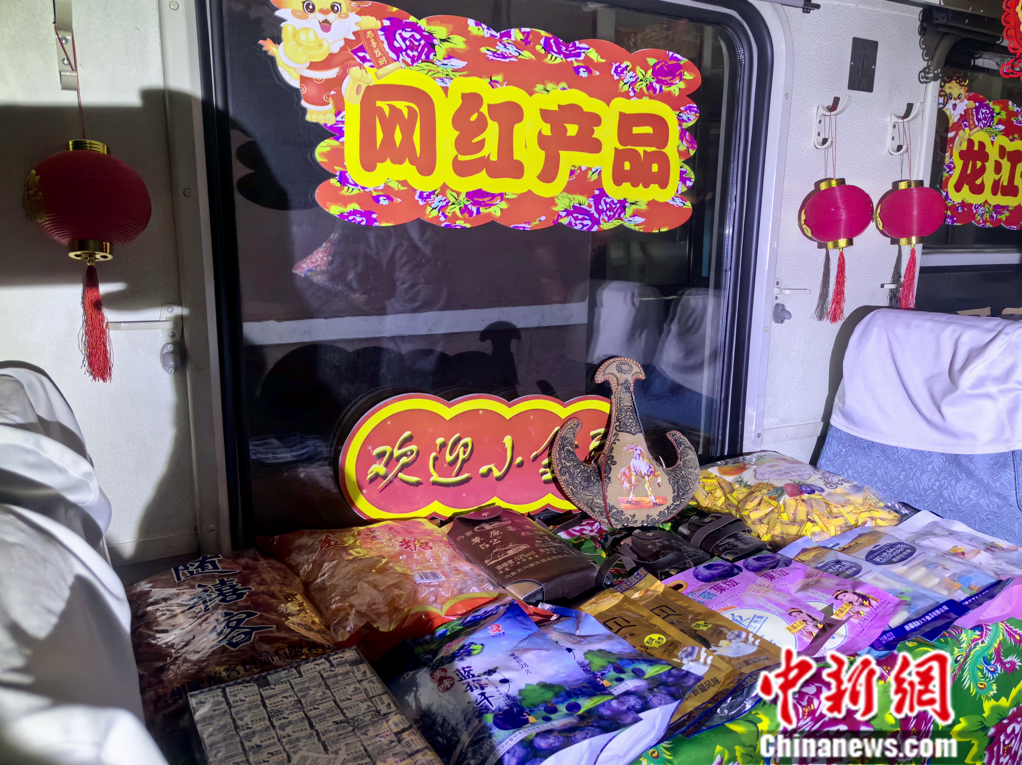 春節(jié)前,走進(jìn)4045次列車車廂,映入眼簾的是火紅的燈籠、拉花,龍年春節(jié)氛圍一下被拉滿,行走的“列車大集”上更是擺滿了地道的東北年貨,讓人不禁感嘆:春運(yùn)路上也可以買(mǎi)特色年貨了!