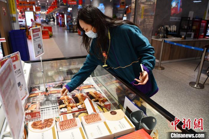 資料圖:顧客選購(gòu)“年夜飯”預(yù)制菜。 張浪 攝