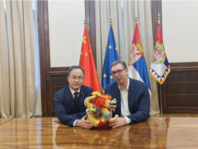 據(jù)報(bào)道,武契奇當(dāng)天在塞總統(tǒng)府會(huì)見中國(guó)駐塞大使李明。武契奇向習(xí)近平主席和中國(guó)人民致以誠摯的新春祝福,祝愿中國(guó)繁榮昌盛,祝愿中國(guó)人民新春快樂、闔家安康、生活幸福。