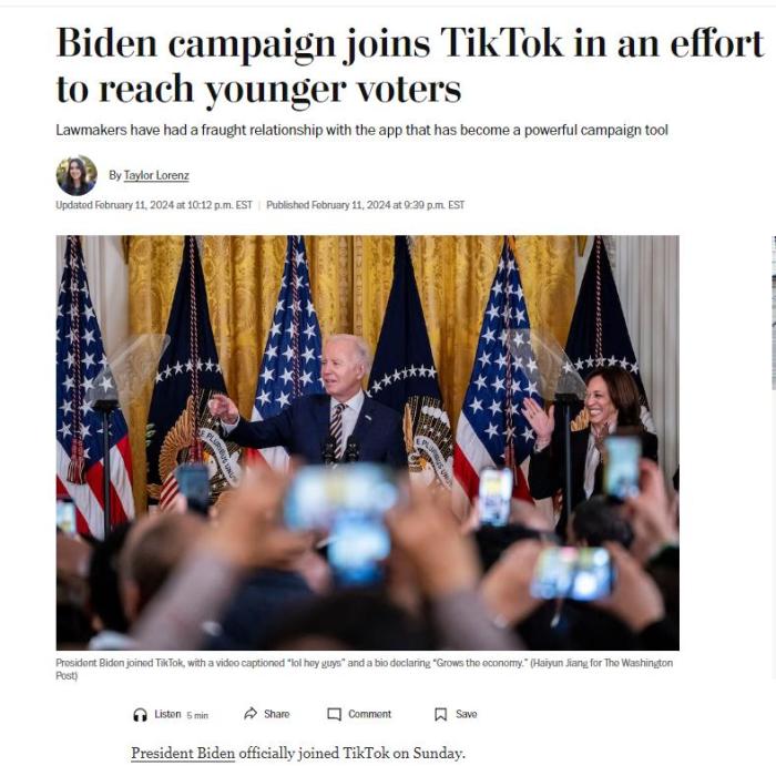 中新網(wǎng)2月12日電 綜合報道,當?shù)貢r間2月11日,美國總統(tǒng)拜登正式加入了社交平臺TikTok。