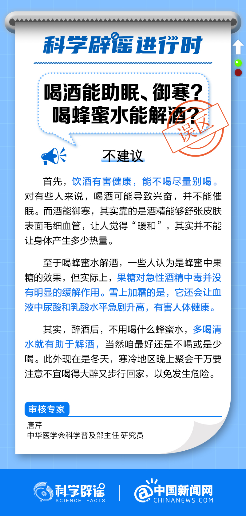 中新真探:喝酒能助眠、御寒?喝蜂蜜水能解酒?