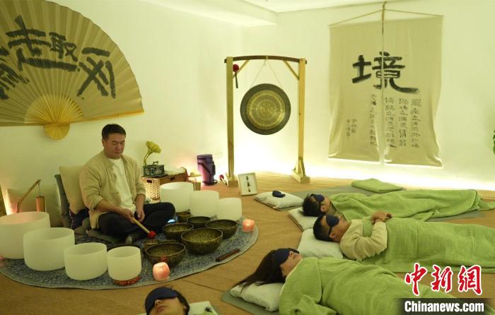 2月,在長(zhǎng)沙市開福區(qū)一家頌缽音療館內(nèi),消費(fèi)者體驗(yàn)頌缽療愈?!±钣?攝