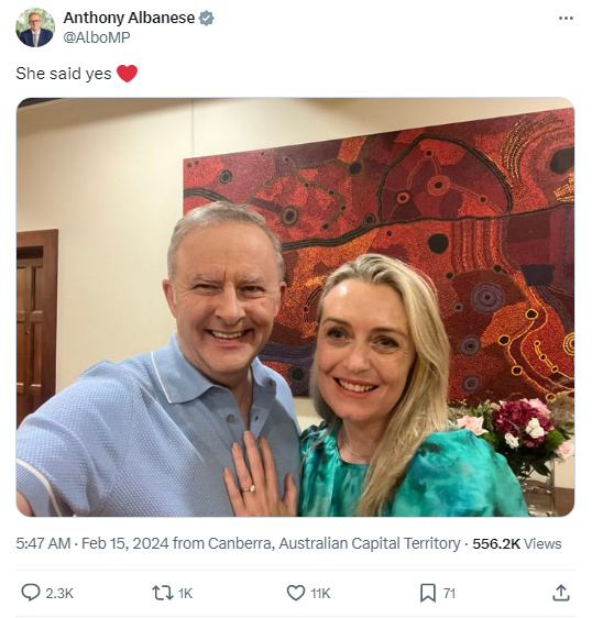 報(bào)道稱,現(xiàn)年60歲的阿爾巴尼斯,是首位在任期內(nèi)訂婚的澳大利亞總理。