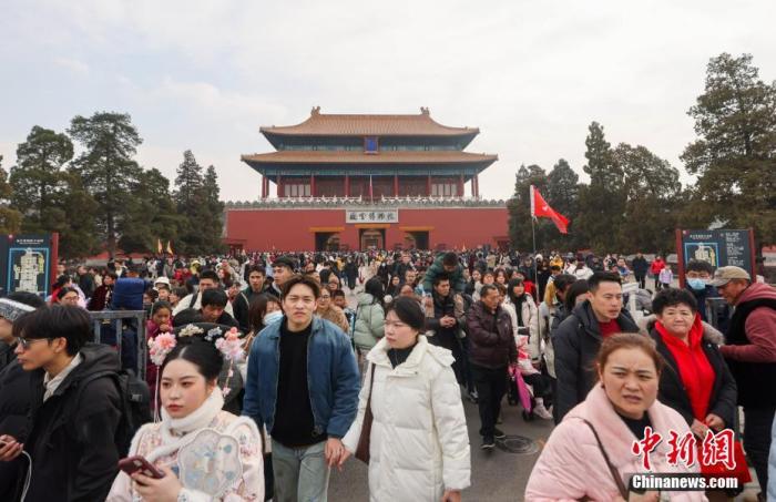 2月17日,游客走出北京故宮博物院。春節(jié)假期,北京旅游市場呈現(xiàn)火爆態(tài)勢。中新社記者 賈天勇 攝