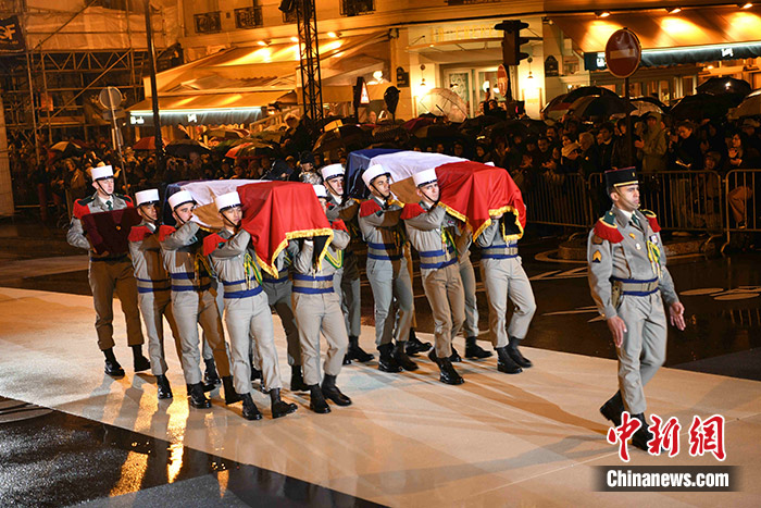 當?shù)貢r間2月21日晚,法國二戰(zhàn)時期抵抗德國納粹侵略的戰(zhàn)士米薩克·馬努尚與他的夫人梅麗內(nèi)一同入葬先賢祠。馬努尚是首位入葬先賢祠的法共抵抗運動成員。 中新社記者 李洋 攝