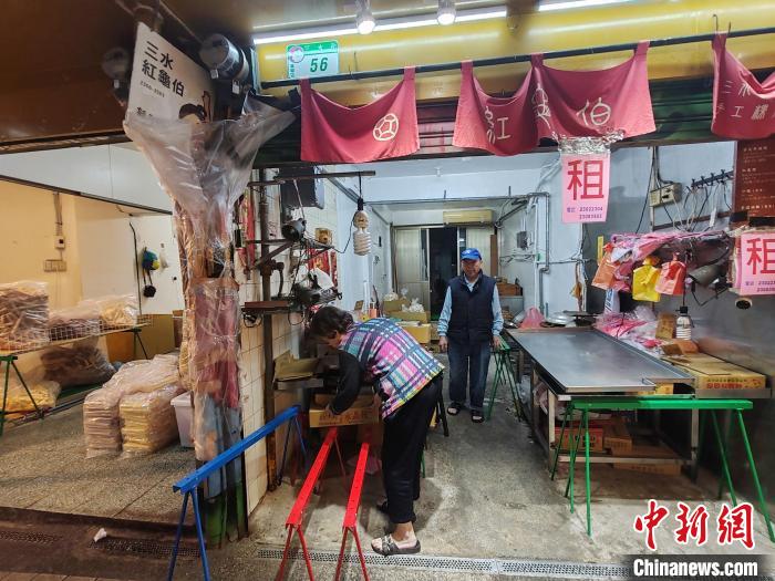 位于臺(tái)北萬(wàn)華區(qū)的三水紅龜伯是經(jīng)營(yíng)近70年的米食老攤,年逾80歲的陳新桂、董敏卿夫婦每天清晨4點(diǎn)便會(huì)手工磨米炊粿。 中新社記者 楊程晨 攝
