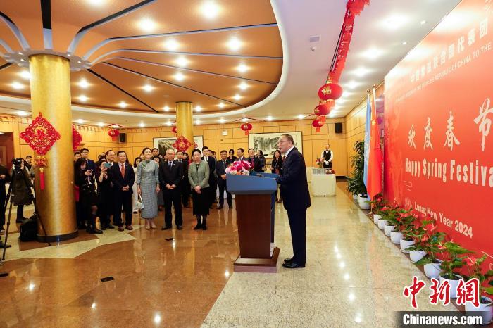 當?shù)貢r間2月23日,中國常駐聯(lián)合國代表團在紐約駐地為中國籍國際職員和駐紐約新聞機構以及中資企業(yè)代表舉辦龍年元宵節(jié)聯(lián)誼會。中新社記者廖攀攝