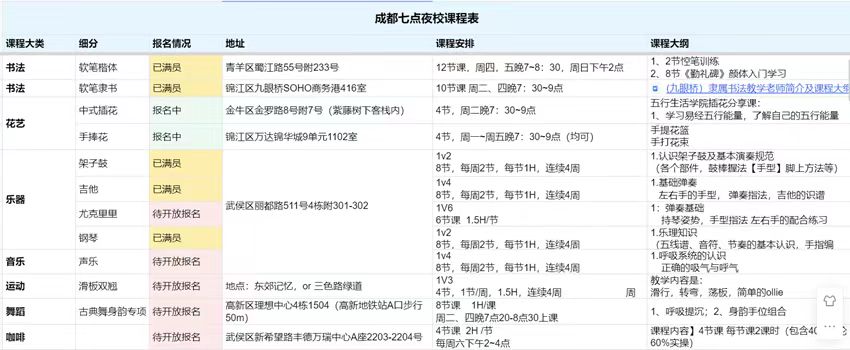 五花八門(mén)的副業(yè)她都嘗試過(guò),目前比較穩(wěn)定、收入占比最大的是去年11月開(kāi)始做的夜校。那段時(shí)間,年輕人上夜校的話題火爆,她發(fā)現(xiàn)成都還沒(méi)有,于是第一個(gè)在成都建起夜校社群,以組團(tuán)的人數(shù)優(yōu)勢(shì)去找商家談低價(jià)課,類似于興趣班的拼多多,目前社區(qū)差不多有5000人。