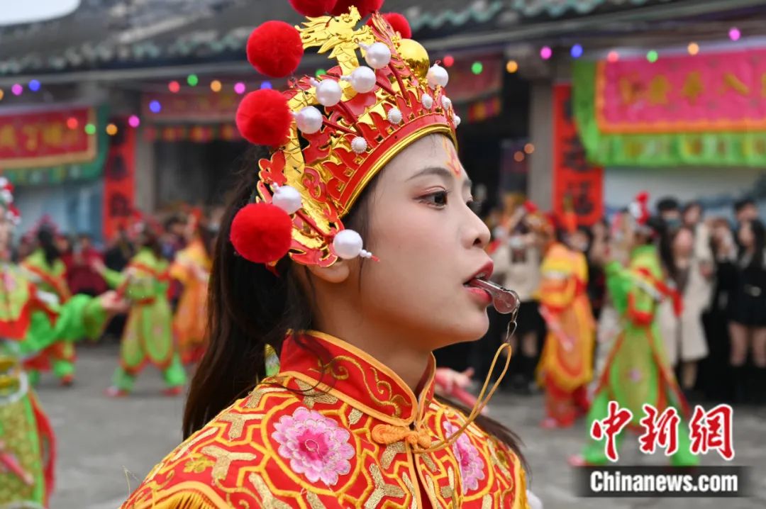 2023年2月9日,廣東潮州,潮陽西門女子英歌隊(duì)亮相仙都鄉(xiāng)媽祖文化巡游活動(dòng)。陳楚紅 攝